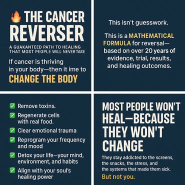 This profound series is my natural, evidence-based cancer reverser. I’ve personally used this formula for common and rare cancers of all types, identifying root causes in my 30+ year study—finding out we can cure Cancers, all of them by natural alignment because the causes are a combination of unnatural things. This is about getting your body to a state and let it do what it can.