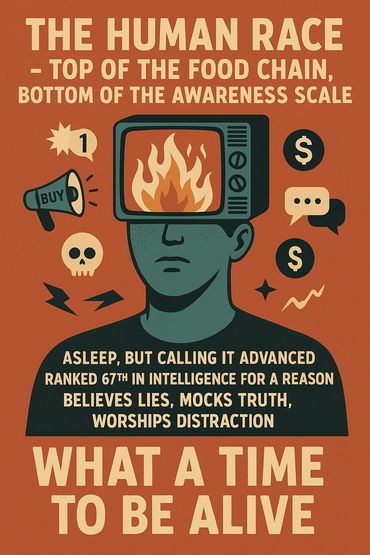 That's sad that you are so conditioned so hurt, so traumatised that your responses are not your own and now your actually the problem - that's right you are the problem - you are the reason for all the suffering and death in the world because you wont stop and take stock of the world around you!