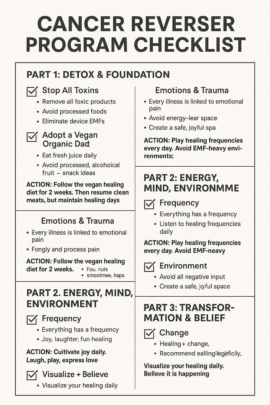 Every single cell in your body follows chemical instructions. Those instructions are affected by your habits, your emotional patterns, your environment, and the frequencies you live in day to day. You didn’t get cancer overnight—it was grown, step by step, by the conditions inside you.